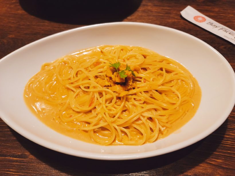 今回は迷いに迷って、期間限定メニューの濃厚ウニクリームパスタにしました!