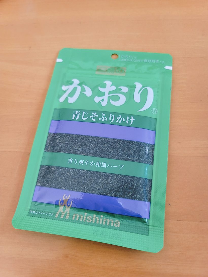 『ゆかり』で有名な三島食品の青じそオンリーふりかけ、『かおり』です。和風ハーブとはよく言ったもんだ…。