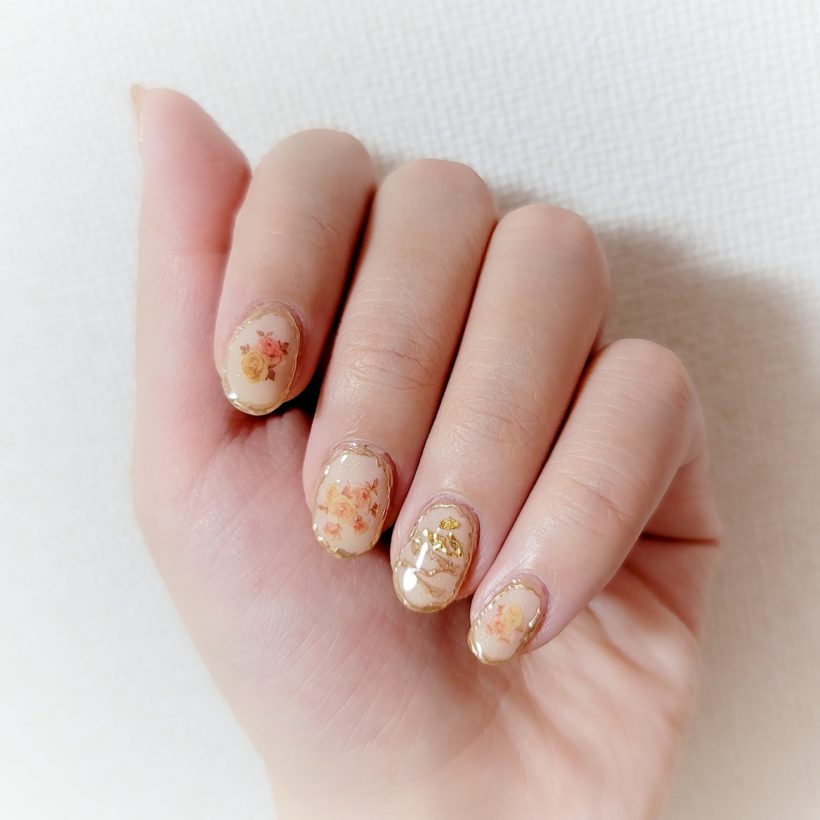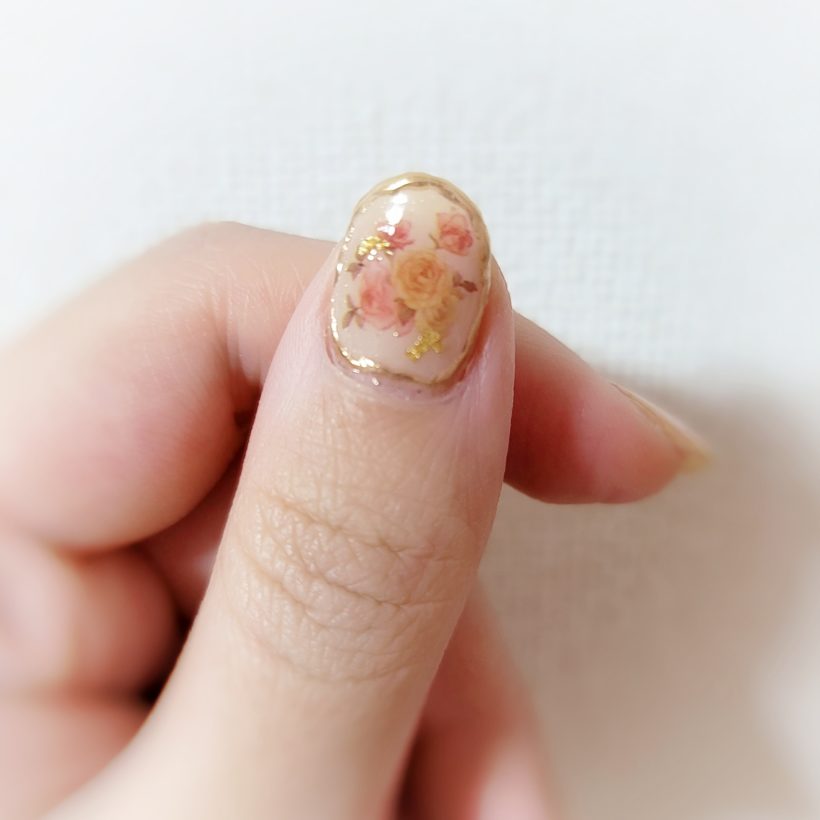 ネイルタウンで購入したネイルシールの印刷はかなり細かくてめっちゃ可愛いので、貼っただけで凄くちゃんとしたネイルアートって感じになってます笑