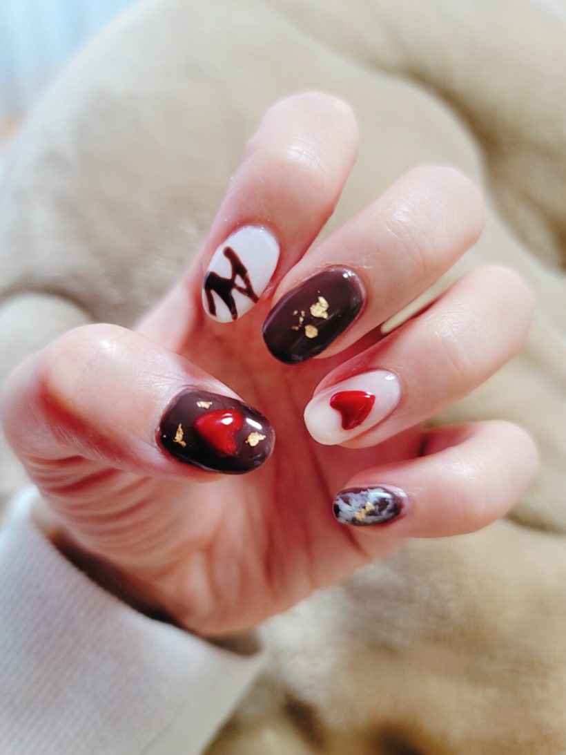 常にこったネイルをするのは面倒ですが、明後日はバレンタイン。せっかくのイベント事なので、チョコレートのデザインネイルをやってみました!