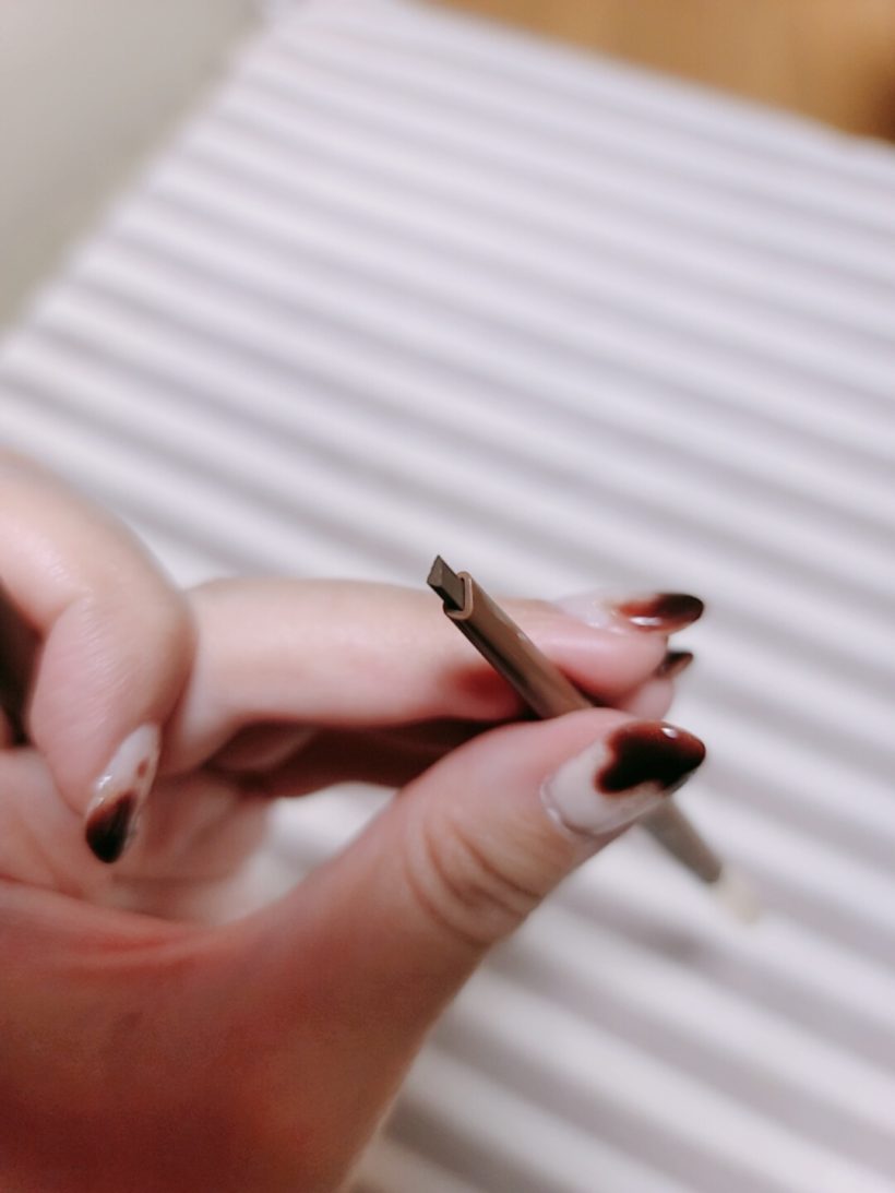 1番角っ子の部分はめっちゃ鋭利です。この角を使えばほんとに1本1本の眉毛のような細〜い線が引けますが、鋭利すぎてちょっと痛いです笑