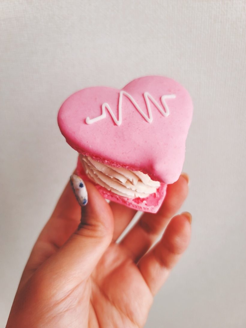 こちらは季節限定のハート型マカロン。バタークリームたっぷりでめっちゃおいしそう&かわいいです!!女子〜って感じしますね。