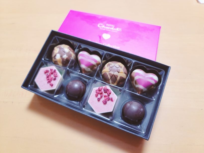 ここのチョコは基本同じ味が6粒入って800円という販売方法なので、お試しに色んな味が楽しめるこちらのボックスはかなりお得でした。
