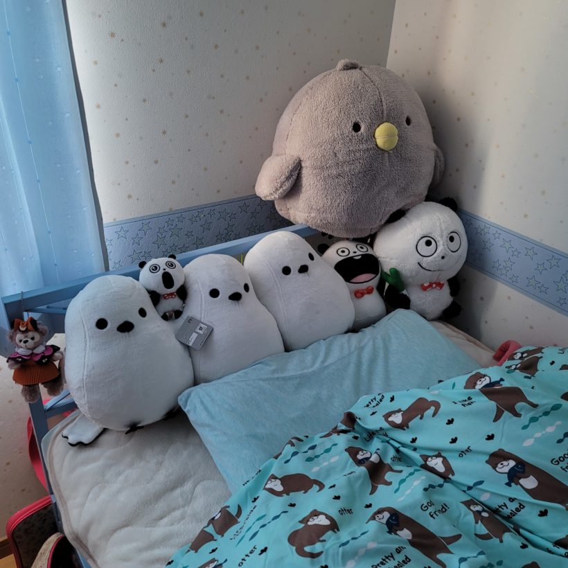 3連シマエナガぬいぐるみをなんとかして置いておきたくて枕元にねじ込んでいたんですが、そのせいで多少なりとも寝るスペースが狭くなっていました。