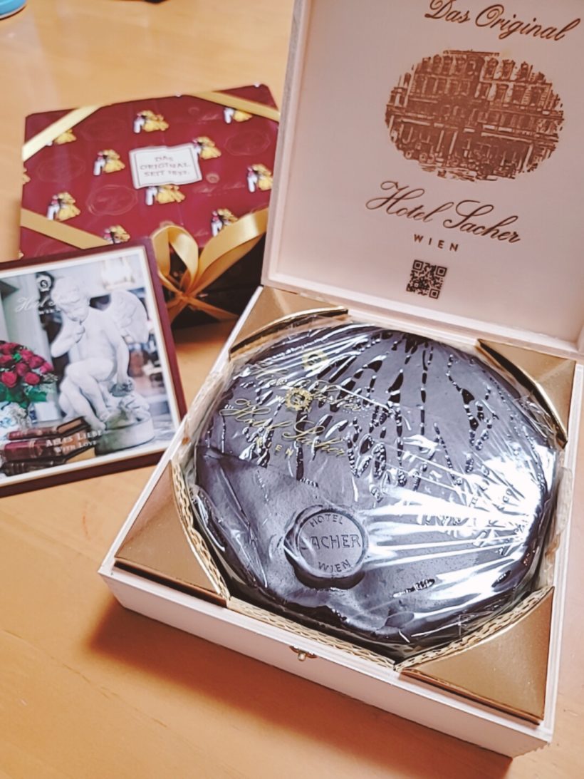 ザッハトルテ以外の商品は売り切れていたので、小さいサイズのザッハトルテを2台購入しました。1台6000円くらいです。桐箱に入ってるケーキなんて人生で初めてです。
