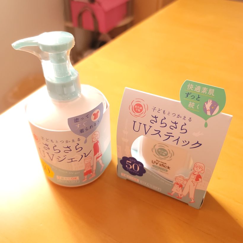 SPF30のジェルは家用、50のスティックは外での塗り直し用として使い分けます。