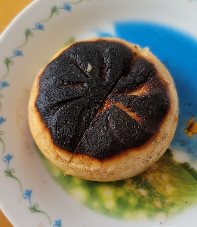 恐る恐る食べてみたところ、予想に反してコゲの苦味はなくて一安心……。むしろ皮の部分がこんがりさっくり焼けていて、新食感の肉まんを味わうことが出来ました!バターの風味は焦げて完全に飛んでたので、成功してればもっと美味しかったんだろうなと思っていたり笑