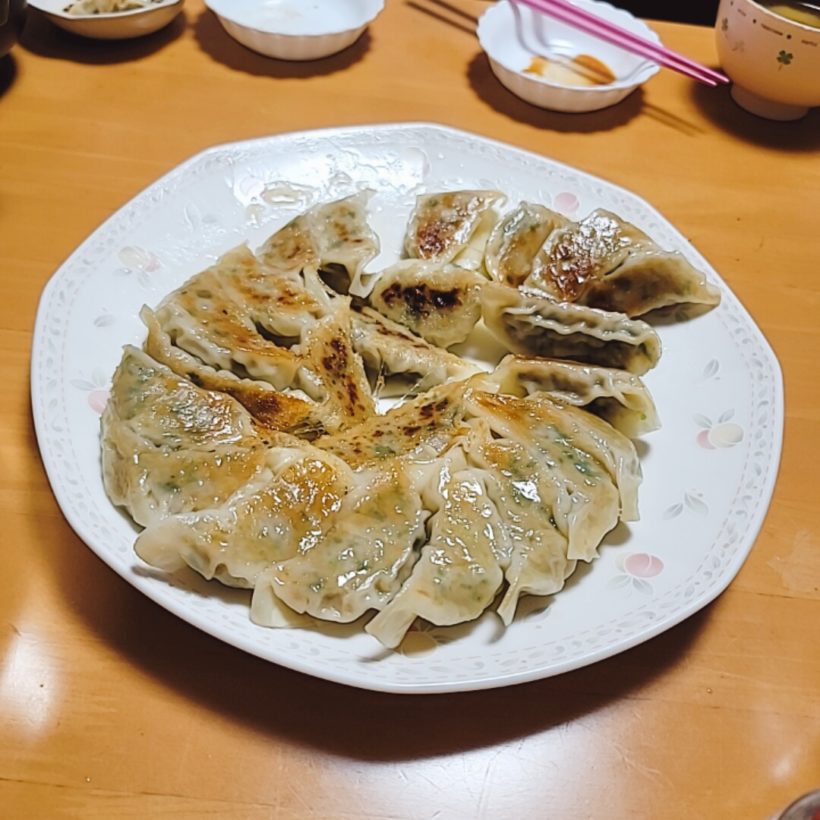 今日は母が休みだったのですが、午前のワイドショーで家で焼く餃子についての特集?を見たらしく夕飯が自家製餃子になりました。