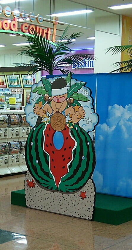 アピタに置いてあった『割られるスイカになれる顔出し看板』です。