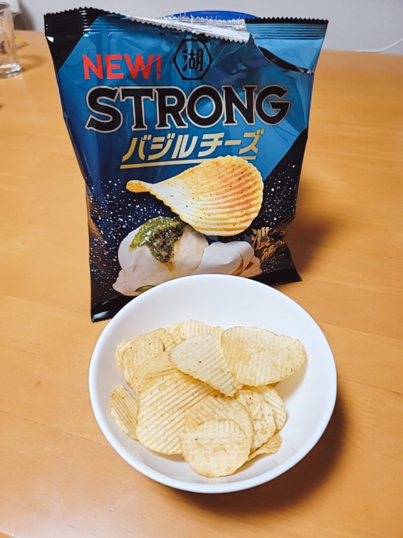 つい最近まで私が暴れしそ梅味を買いしめていた『湖池屋 STRONG』シリーズに、今度は待望のバジルチーズが出ました!!