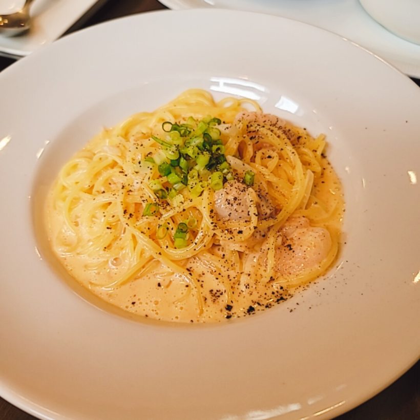 この日は結局店員さんから勧められた『海の幸のカルボナーラ』の生スパゲティセット(1,400円)に決定!