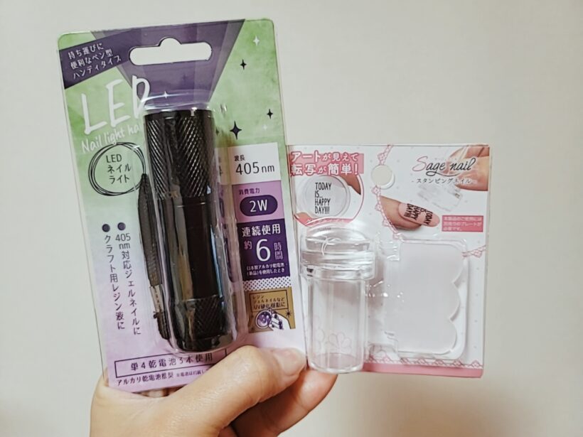 ハンディタイプのLEDライトとスタンピングネイル用のシリコンスタンパーです。