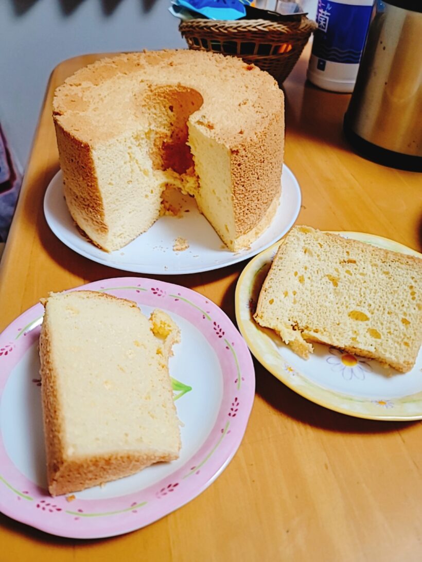 母が久しぶりにシフォンケーキを焼いてくれました。