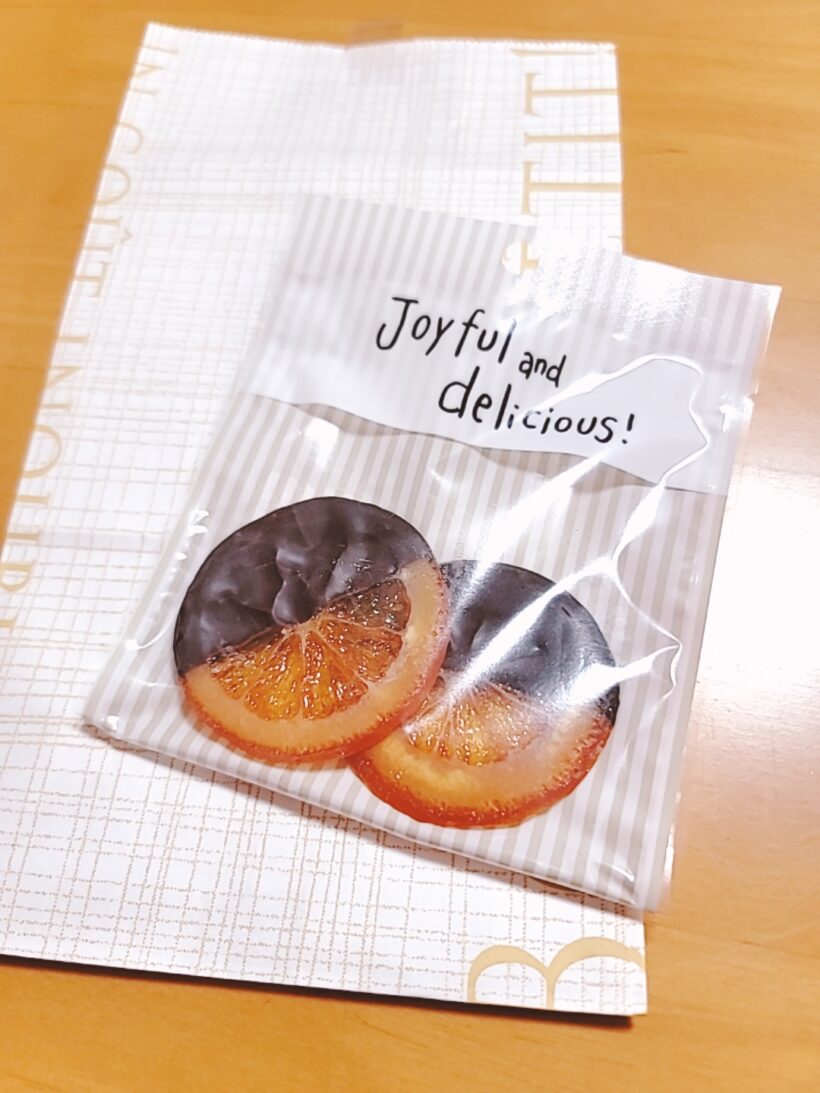 この手のものを食べるのは初めてなので、オレンジが想像以上にジューシーで驚きました。ドライフルーツではなく砂糖漬け?なので、皮ごとオレンジの風味がチョコレートと一緒に楽しめます。