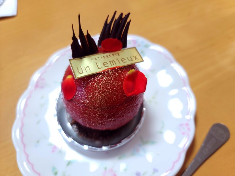 私が食べたのは真っ赤で真ん丸なのが最高に可愛い&オシャレな「ショコラルージュ」。エディブルフラワーまで載っててビジュアル100点満点です。