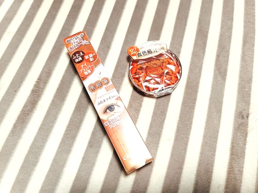 どちらもオレンジ色がかわいい!片方はシアーな発色のアイライナー、片方はクリームチークです。