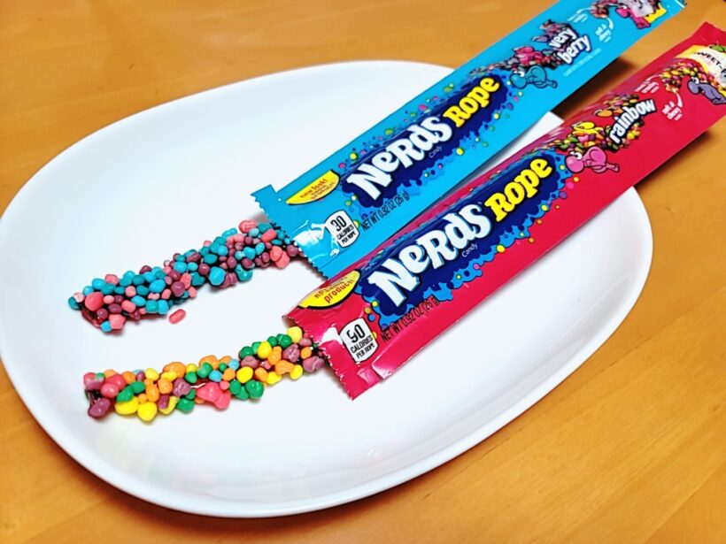これだけ見るとキッショ!ってかんじのつぶつぶ具合と極彩色ですが、こちらはASMR動画で人気のグミ菓子。細長いグミの周りにびっしりと小さいラムネが沢山ついているといういかにもアメリカなお菓子です笑