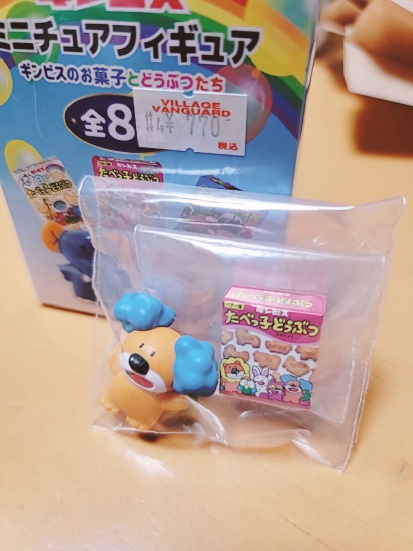この子のおまけ(?)でたべっ子どうぶつそのもののミニチュアが付いていますが、このパッケージはその旧バージョンを再現していてファンの垂涎の的となるアイテムだとか笑