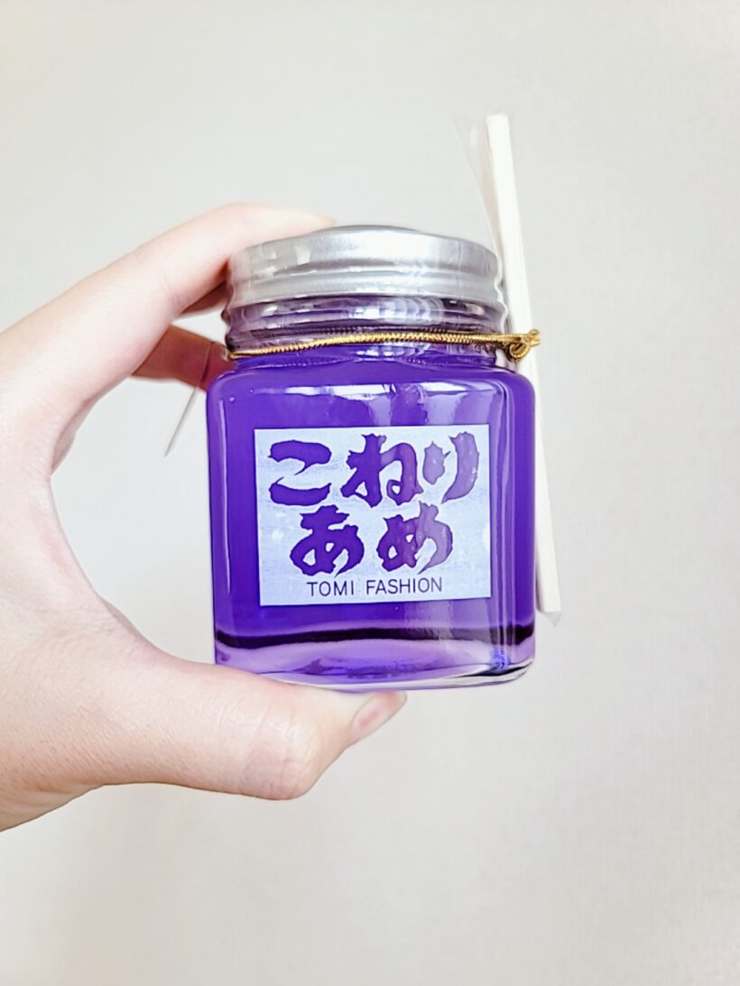 基本的には普通の水飴なんですが後味が微妙〜にぶどう味になっています。ぶどう味自体も大好きだからこれは本当に止められなくなる〜!