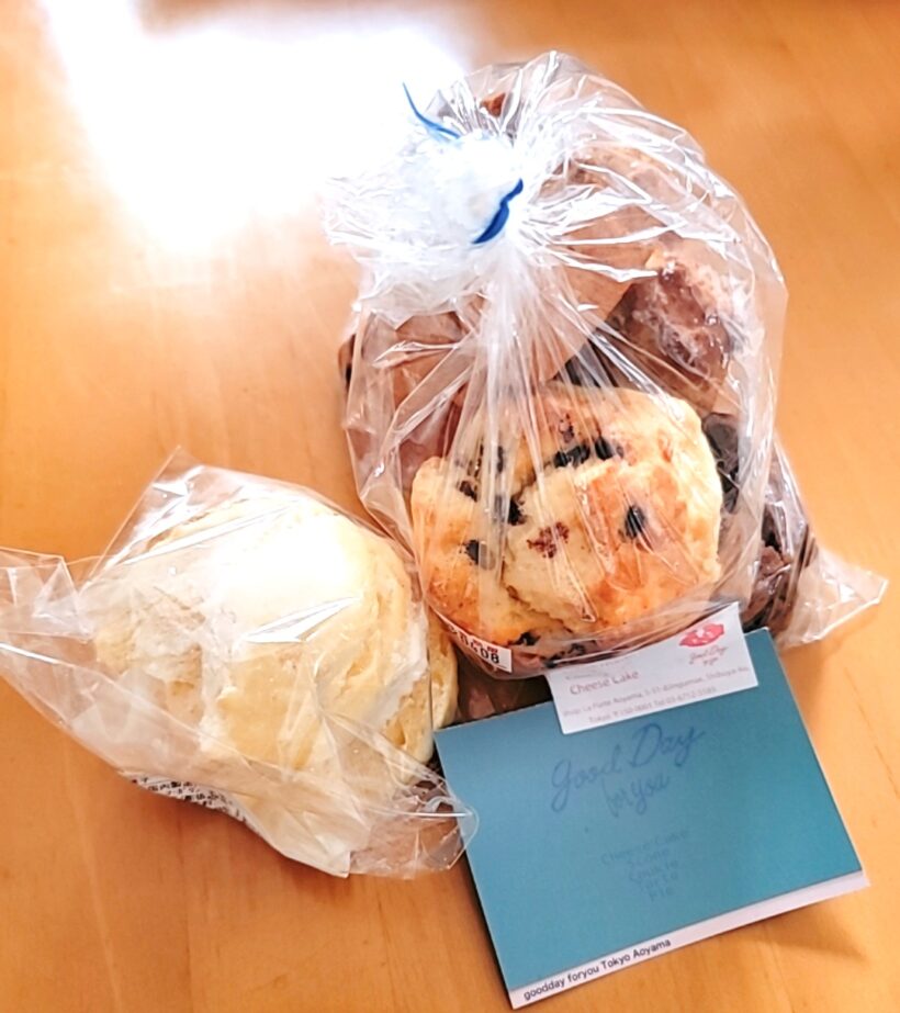 内心ボヤいていたら、なんとタイムリーにも母が出かけたお土産にスコーンを買ってきてくれました。