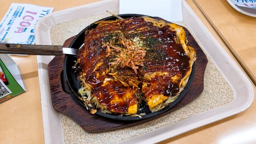 薄いお好み焼きの下にみっちり入った焼きそばにチーズが絡んで最強の満足感を誇っていましたよ……。炭水化物とっとるな〜という罪悪感はすごい笑