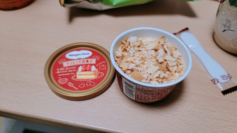 結構前からあったと思うんですが、やっとハーゲンダッツのナポレオンパイ味に手を出しました。ミルフィーユ好きのくせに出遅れた。