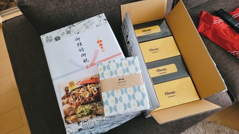 同期のみんなから結婚祝いでBRUNOのホットプレートと謎に高級なティッシュをいただきました!!!ありがとうございますありがとうございます……!