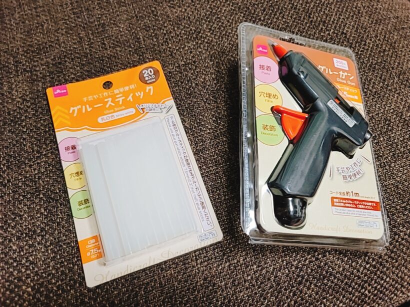 1年でそう使うことも無いかもしれませんけど、あるというだけでなんとなく心強いグルーガン……。試しに使ってみたいという方はとりあえずダイソーでチャレンジしてみてはいかがでしょうか!