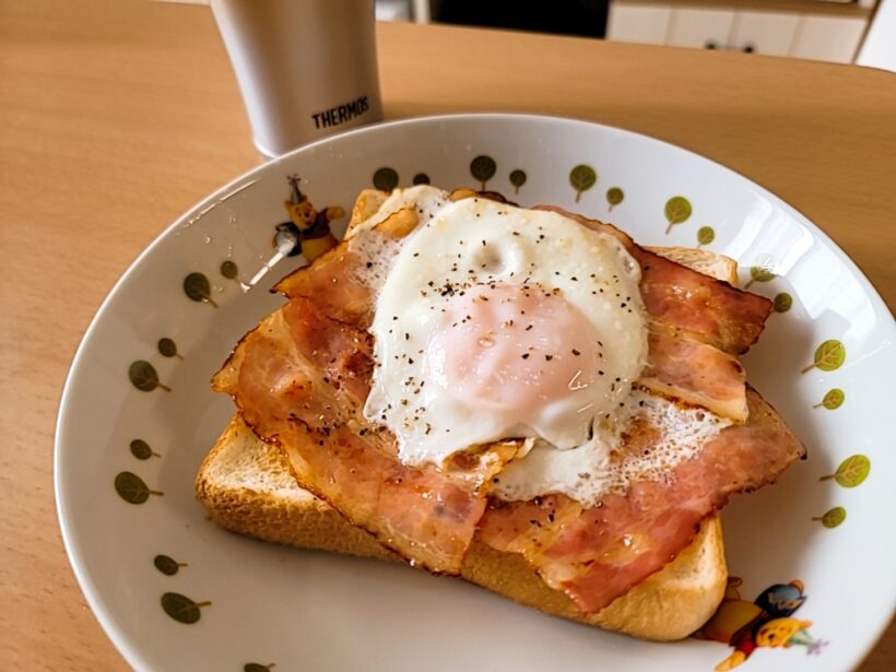 たまたま見かけた投稿が忘れられず、朝食にベーコンエッグトーストを作りました。