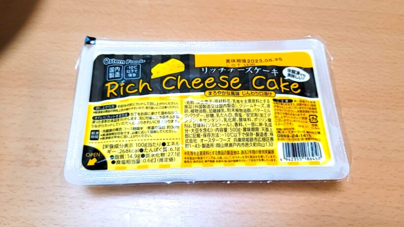 「リッチチーズケーキ」というでっかい冷凍のチーズケーキです。