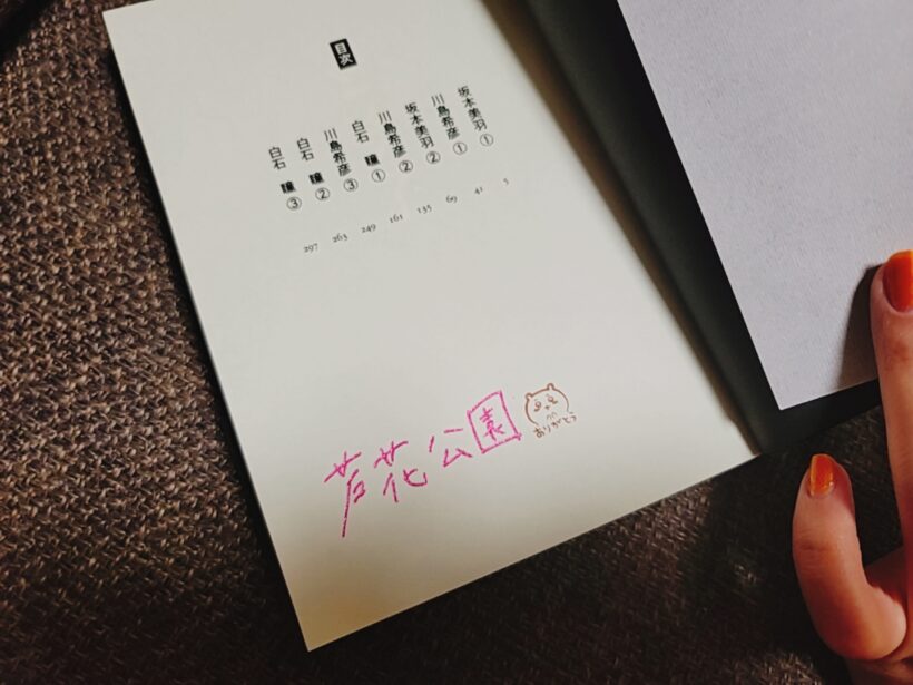 ここだけかと思ったら目次にもサインとちいかわのスタンプが押してあって笑っちゃいました。お茶目〜!