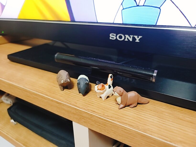 妹から貰ったガチャのフィギュアをずっとしまい込んでいたので、せっかくだからとテレビの前に飾ることにしました。