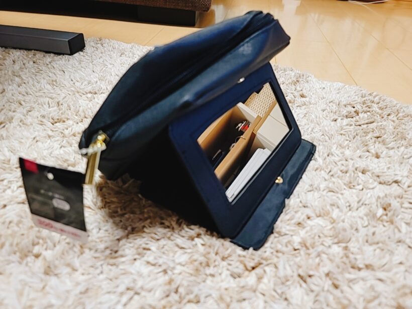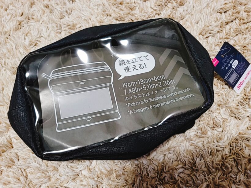 いつぞやどれかのSNSでばずっていた、スタンドミラー付きの300円ポーチです。