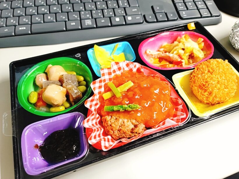 節約のためご飯だけ持参しておかずオンリーのものを注文しました。ご飯をおにぎりにしたり詰めたりするのももうめんどいレベルなんですけど、おかずがしっかり用意して貰えるだけで心の軽さが全然違います笑