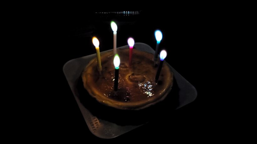 6本あったのに刺すバランスを間違えたので中央に刺すしか無くなりました。なんかの儀式みたいだし、火は付けにくいし散々なビジュアルです。ごめんね……!