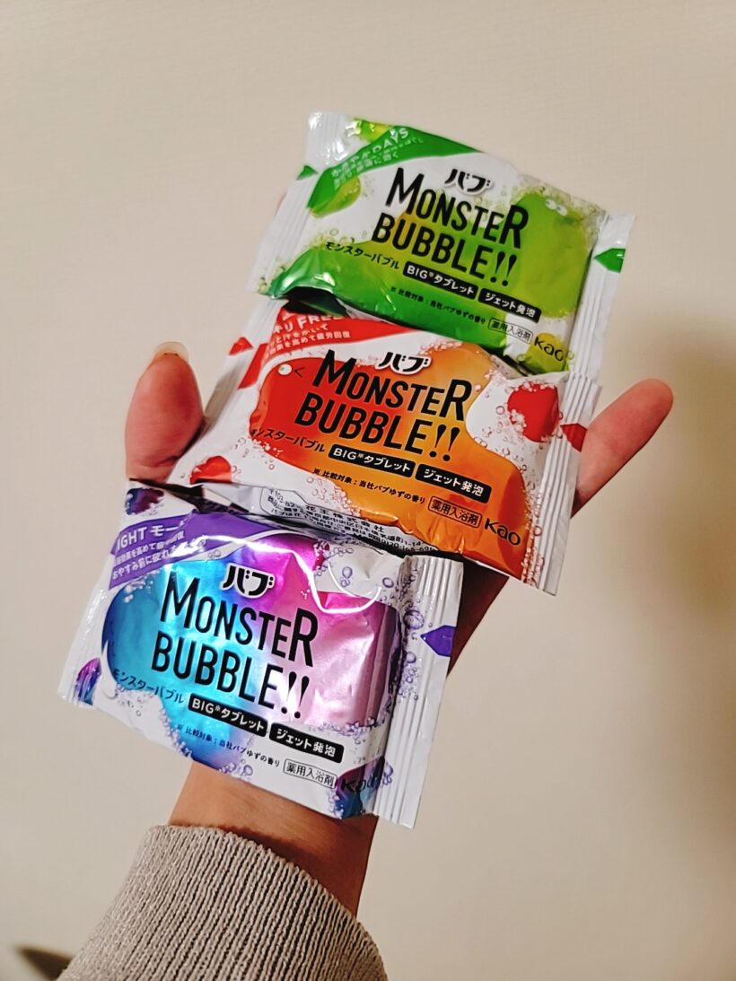 ということで、新発売の「バブ モンスターバブル」を全種1個ずつ買っちゃいました。