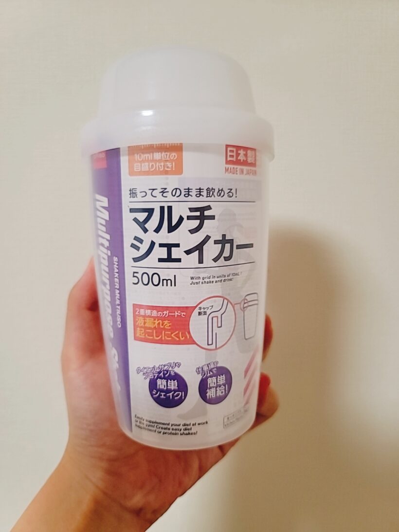 ダイソーのマルチシェイカーはきちんと目盛り付だし液漏れを起こしにくい作りだしとプロテインを飲む人にはうってつけの商品。