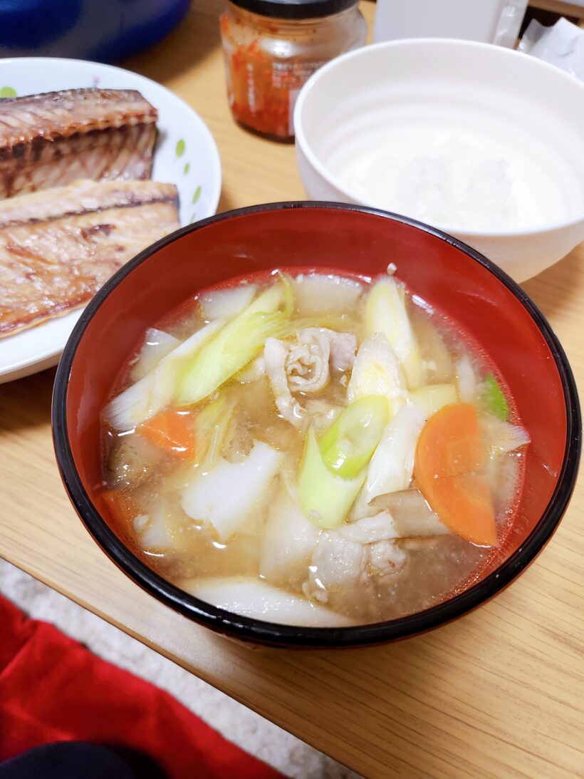 ちょうど材料がそろっていたのと私が単純に食べたかったのとで、ガッツリと豚汁を作りました。