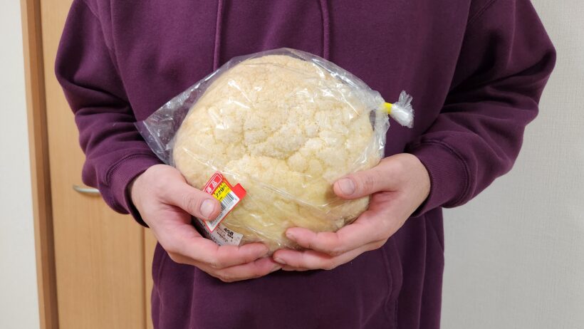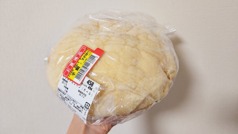 久しぶりに寄ったプラントの半額パンコーナーにて、めちゃデカサイズのメロンパンを購入しました。