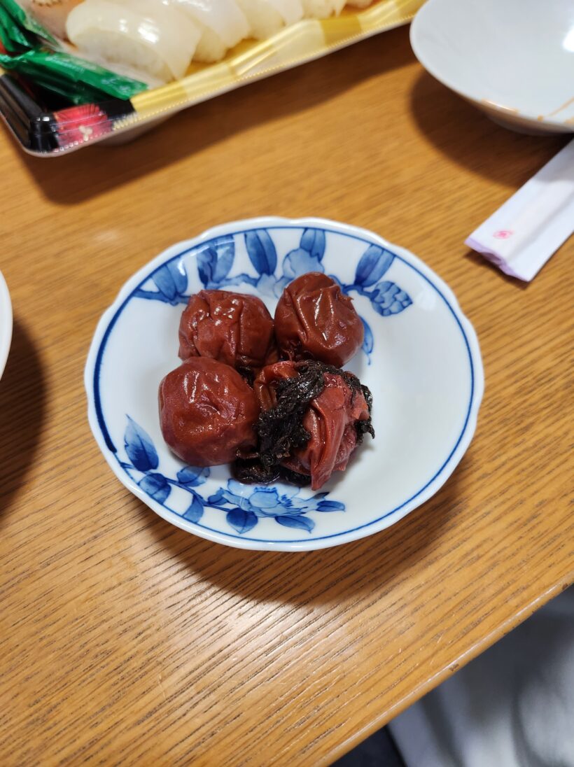 お正月は夫の実家にご挨拶に行き昼ごはんをご馳走になったのですが、その時におばあちゃんお手製の梅干しをいただきました。