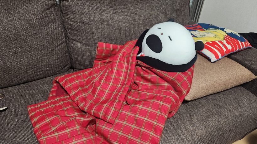 せっかく可愛いごきげんぱんだのぬいぐるみ、ただ転がしておくだけでは何だか良心が痛むので……。