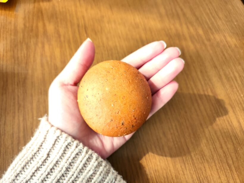 手のひらからほんのちょっとだけはみ出るくらいのサイズなので、正直これをふたつ食べたとしても満足できるかは微妙……というのが初見での感想でした。