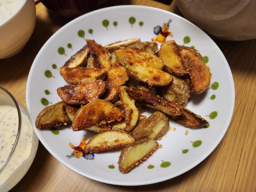 時間が少し経っても外側はカリカリ、中ホクホクのお店みたいな出来たてポテトでした。あえて新じゃがにこだわったのもありより一層芋の美味しさが際立っています。