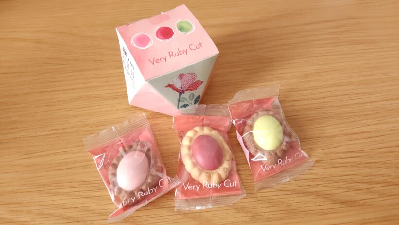 こちらは東京駅で販売されている「ベリールビーカット」というお菓子。宝石のブローチみたいな見た目があまりにもキュートすぎる!!