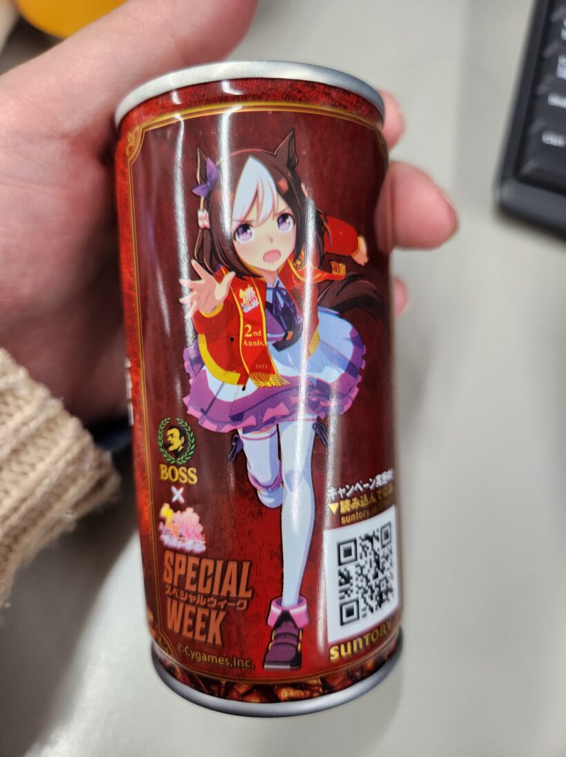 少し前から会社の自販機にウマ娘コラボの缶コーヒーが入っていました。