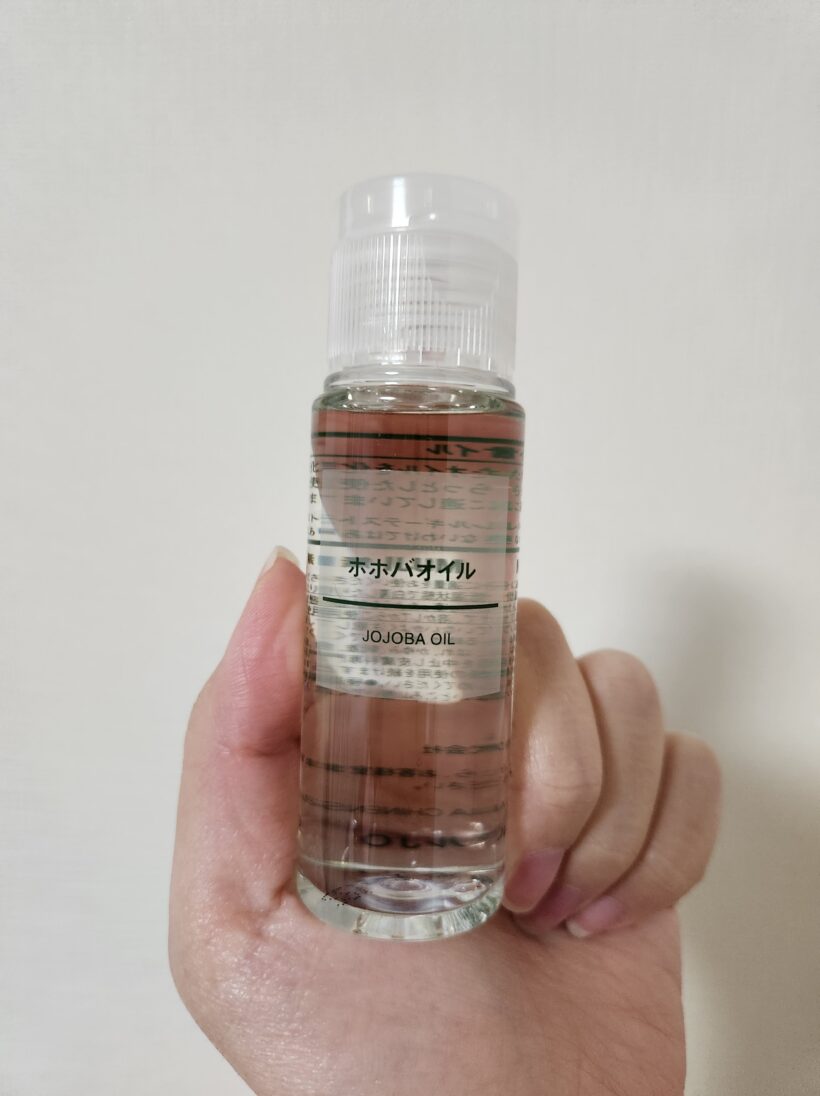 髪の毛をちょっと切ってからうねりやらパサつきやら色々に気になるところが増えてきたので、ためしに無印のホホバオイルを買いました。