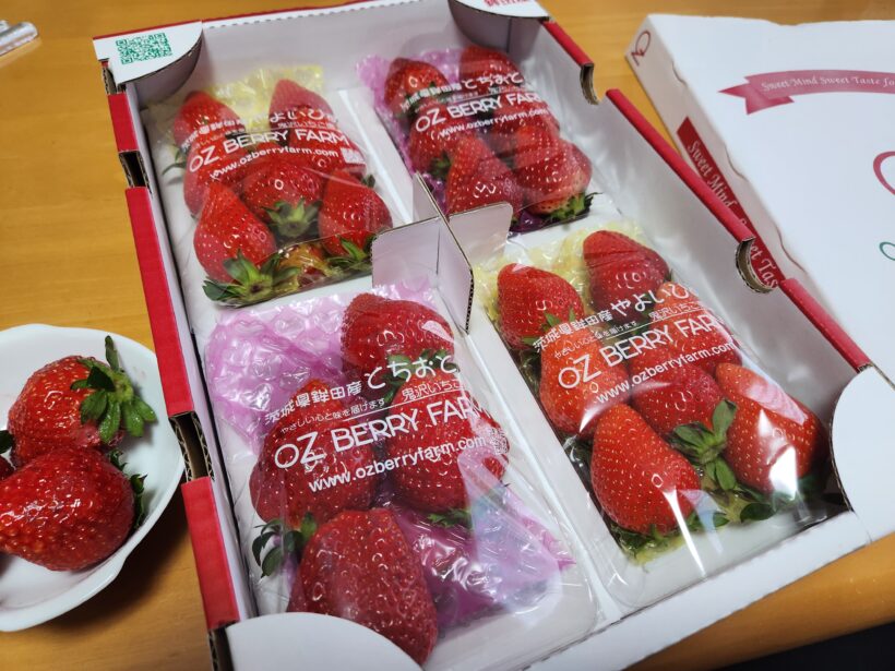 実家から、「OZ BERRY FARM(鬼沢いちご園)」のいちごをおすそ分けしてもらいました。