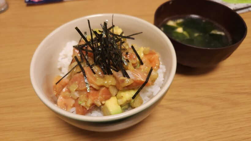 いつかお店でちゃんとしたサーモンポキ丼をたべるぞ〜!!