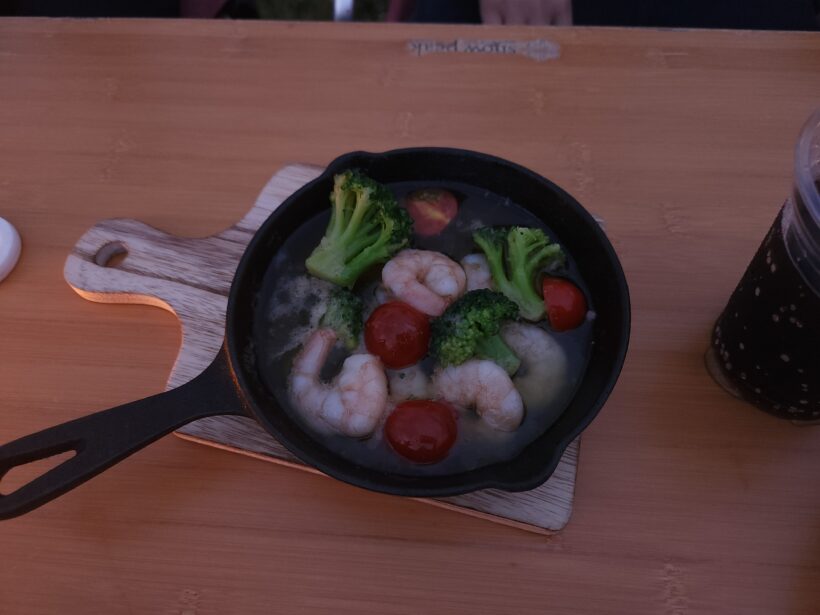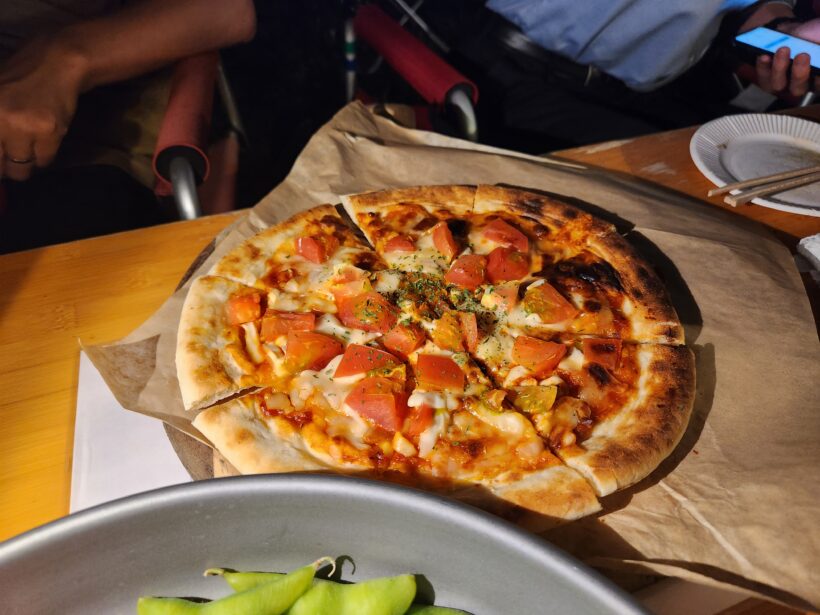 ミニランプに照らされたピザの宝物感が凄かったです。キャンプ飯感のある写真が撮れました。