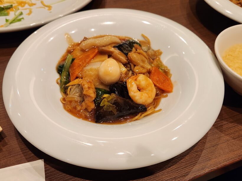 〆はあんかけ焼きそばだったのですが、しっかり目の半人前くらいの量が一人一人に提供されるのでほとんどの方がゾッとしていました笑